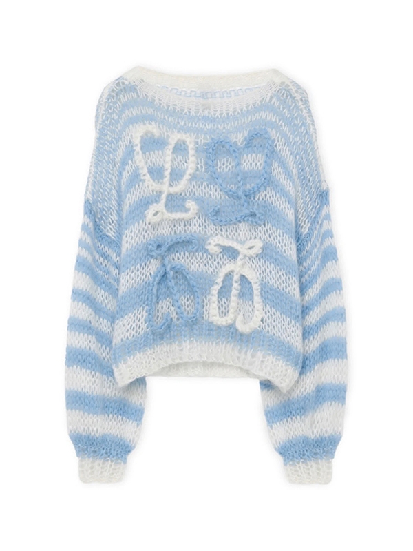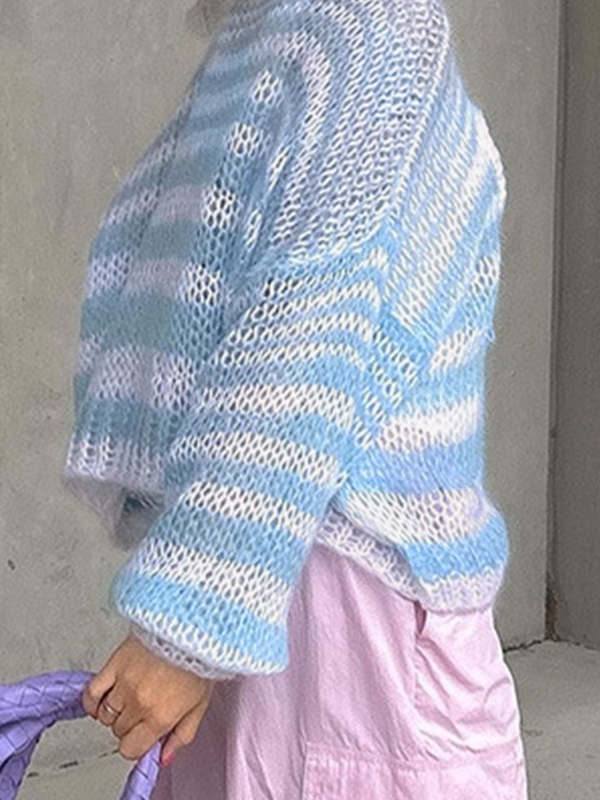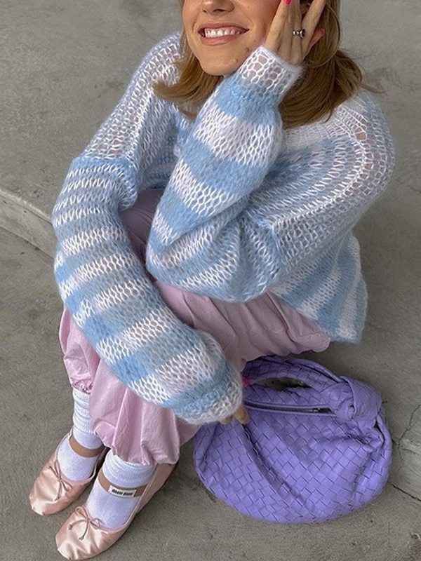 Einzigartiges Design: Das hellblau-weiße Streifendesign verleiht dem Pullover einen frischen, modernen Look , während das Häkeldesign einen Vintage-Touch verleiht.