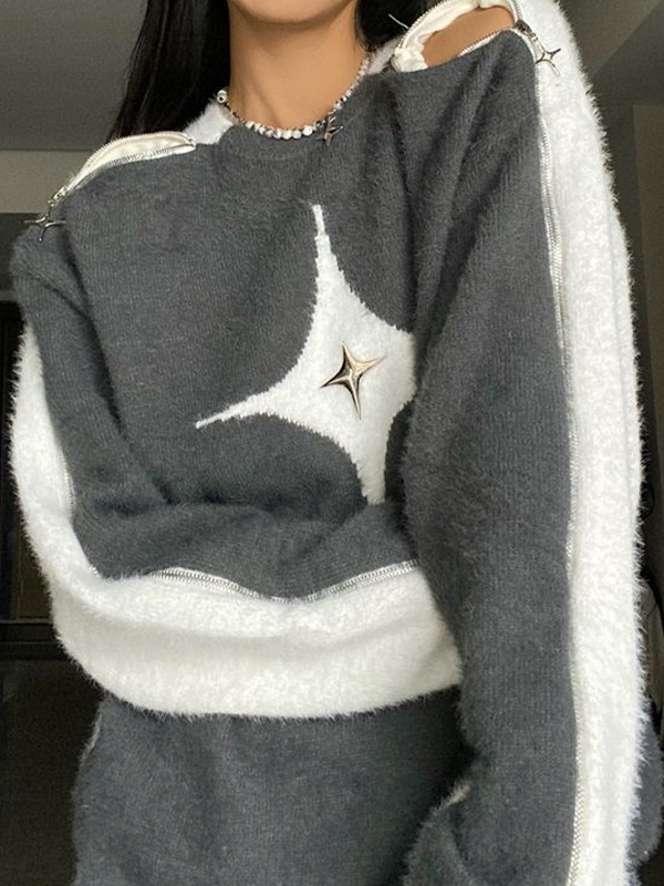 Reißverschluss-Design an der Schulter: Das Reißverschluss-Design an der Schulter dient nicht nur der Ästhetik, sondern verleiht dem Pullover auch eine hippe Pop-Atmosphäre. Dieses interessante Merkmal macht das Hemd modischer und ausgefallener.