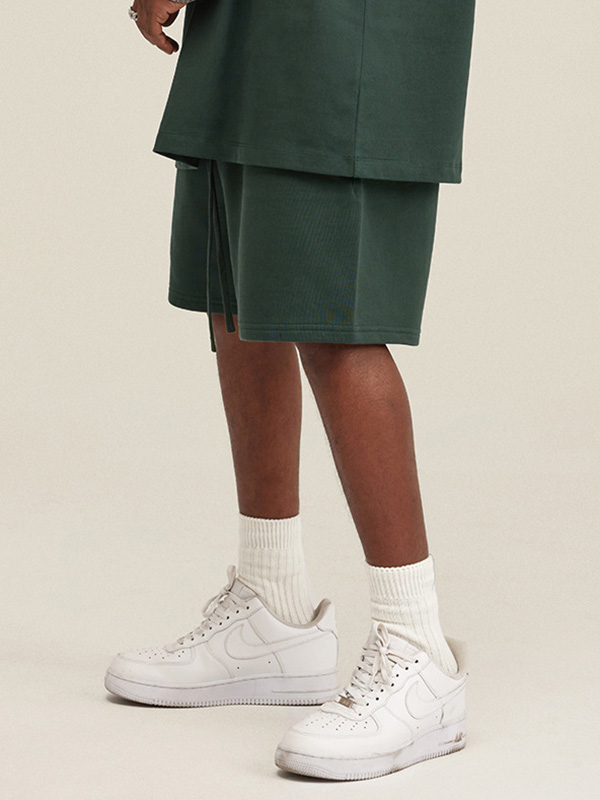 Diese blauen Shorts lassen sich wunderbar mit einem passenden übergroßen T-Shirt im gleichen Farbton kombinieren, was ein schickes, einfarbiges Ensemble ergibt, das mühelosen Stil und Zusammenhalt ausstrahlt. Das Hinzufügen von strahlend weißen Socken und Sneakers führt ein kontrastierendes Element ein, verleiht eine verspielte Note und verstärkt den insgesamt lässigen Charme des Outfits weiter.